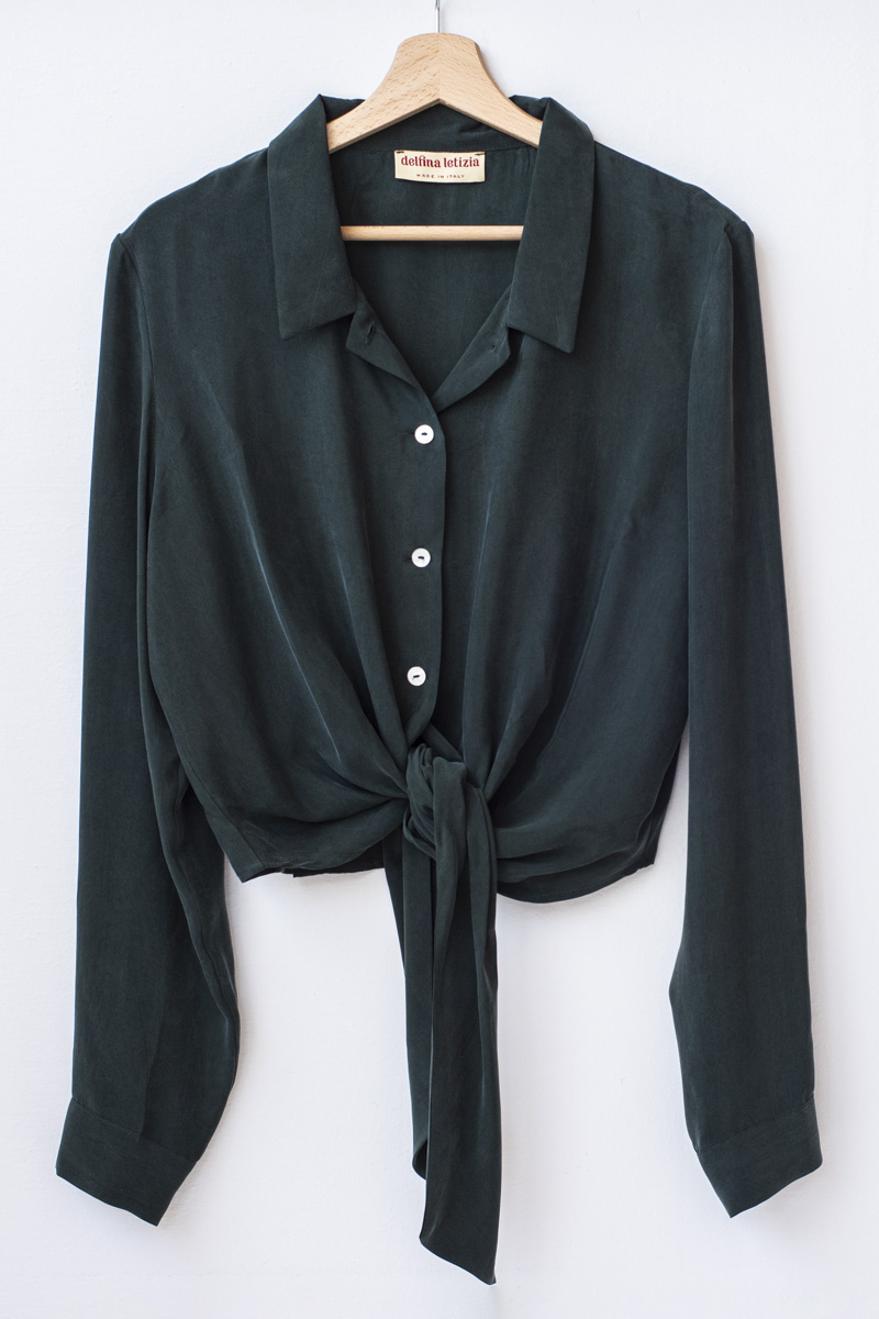 Camicia in morbida seta vegetale con nodo in vita. Un passepartout! Made in Italy.